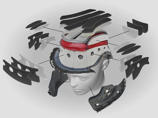 Met behulp van meetinstrumenten en ervaring van getrainde specialisten wordt de binnenvoering van de helm aangepast. Dit gebeurt door het toevoegen of verwijderen van schuimdelen, zodat de helm overal gelijkmatig aansluit.