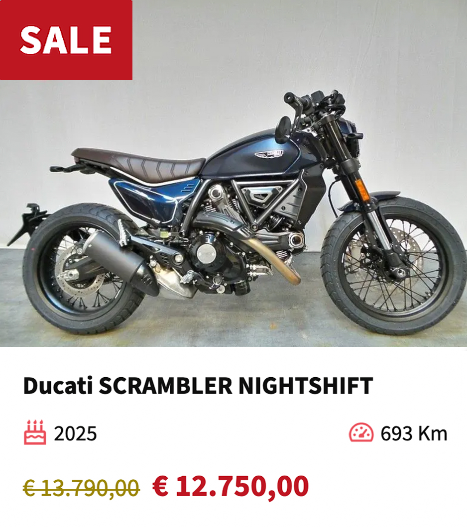 Ook gaan onze demo’s de deur uit. Profiteer nu van de demokorting. Een bijna nieuwe motorfiets met de kop er af ! Wees er snel bij.